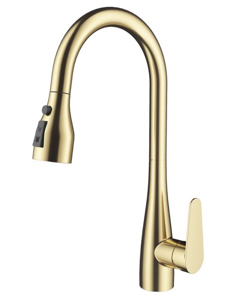 Смеситель для кухни с выдвижным изливом WONZON & WOGHAND, Брашированное золото (WW-121E201B-BG)