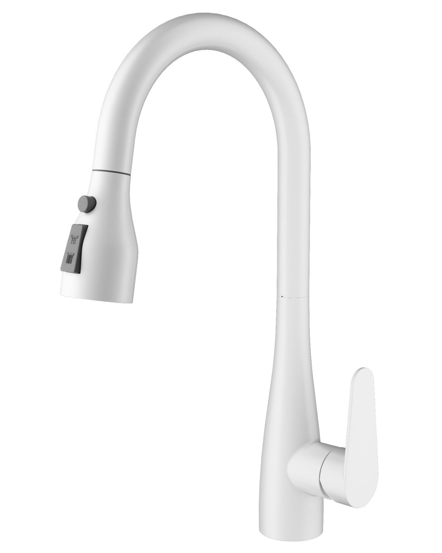 Смеситель для кухни Wonzon & Woghand WW-121E201B-MW с выдвижным изливом белый матовый