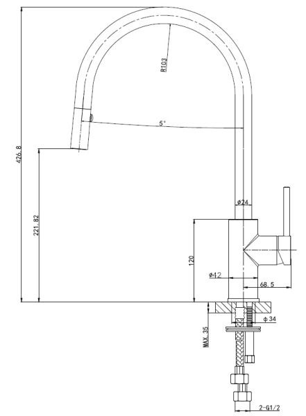 • Высота смесителя: