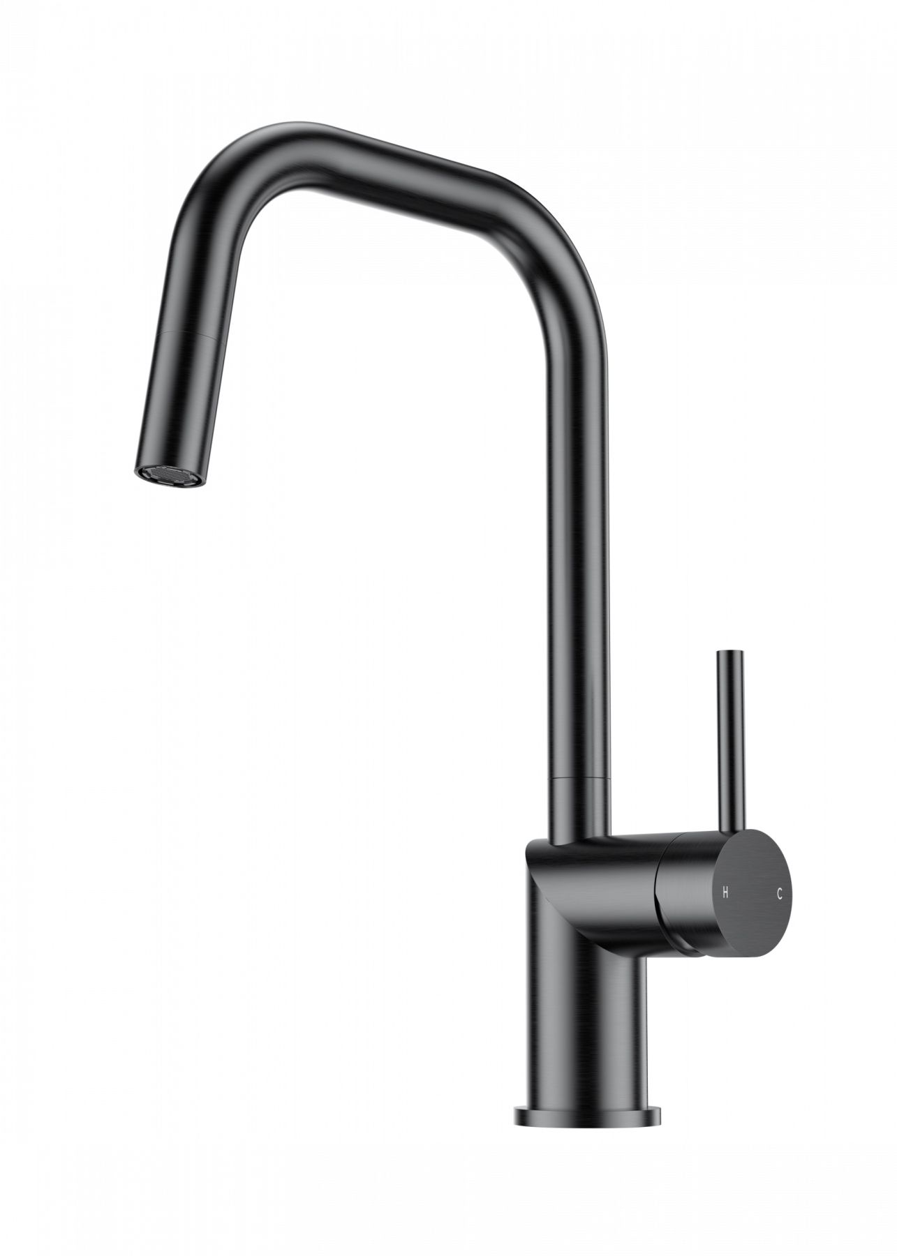 Смеситель для кухни Wonzon & Woghand WW-6018-BGG с выдвижным изливом тёмный графит купить