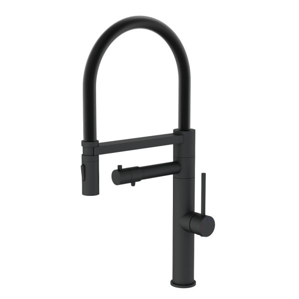 Смеситель для кухни с гибким изливом и подключением фильтра WONZON & WOGHAND, Черный матовый (WW-88458007-MB)