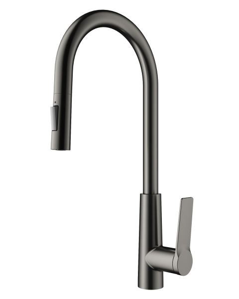 Смеситель для кухни Wonzon & Woghand WW-A20782-BGG с выдвижным изливом тёмный графит
