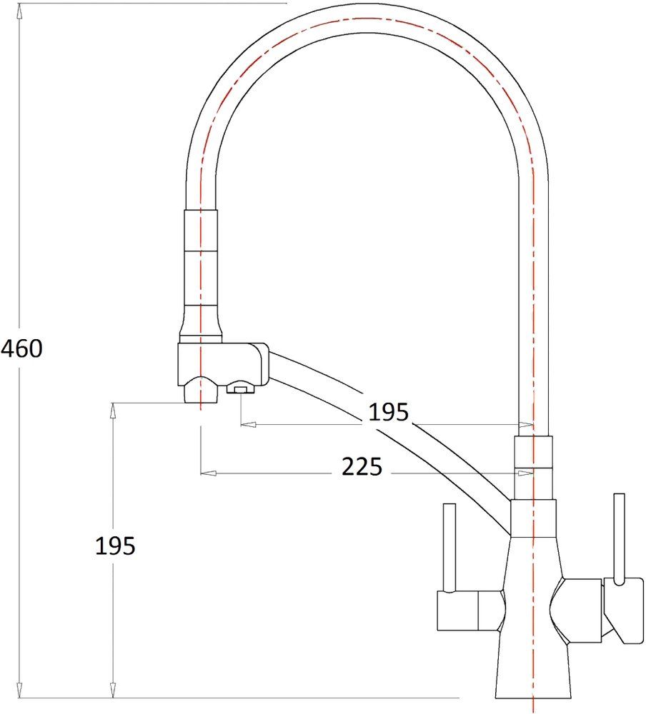 • Высота смесителя: