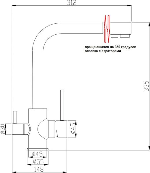 • Высота смесителя:
