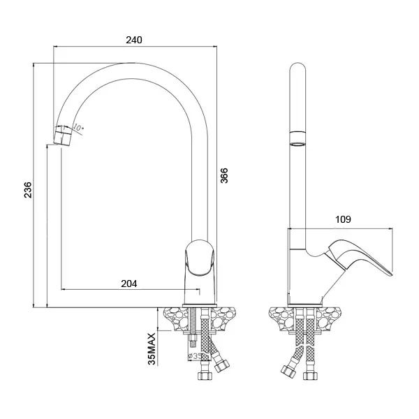- Вращение излива поворотный