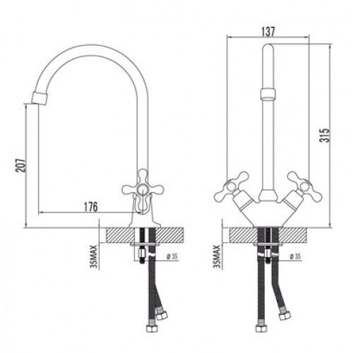 Артикул LM2105CСмеситель для кухни с поворотным изливом 315 мм.