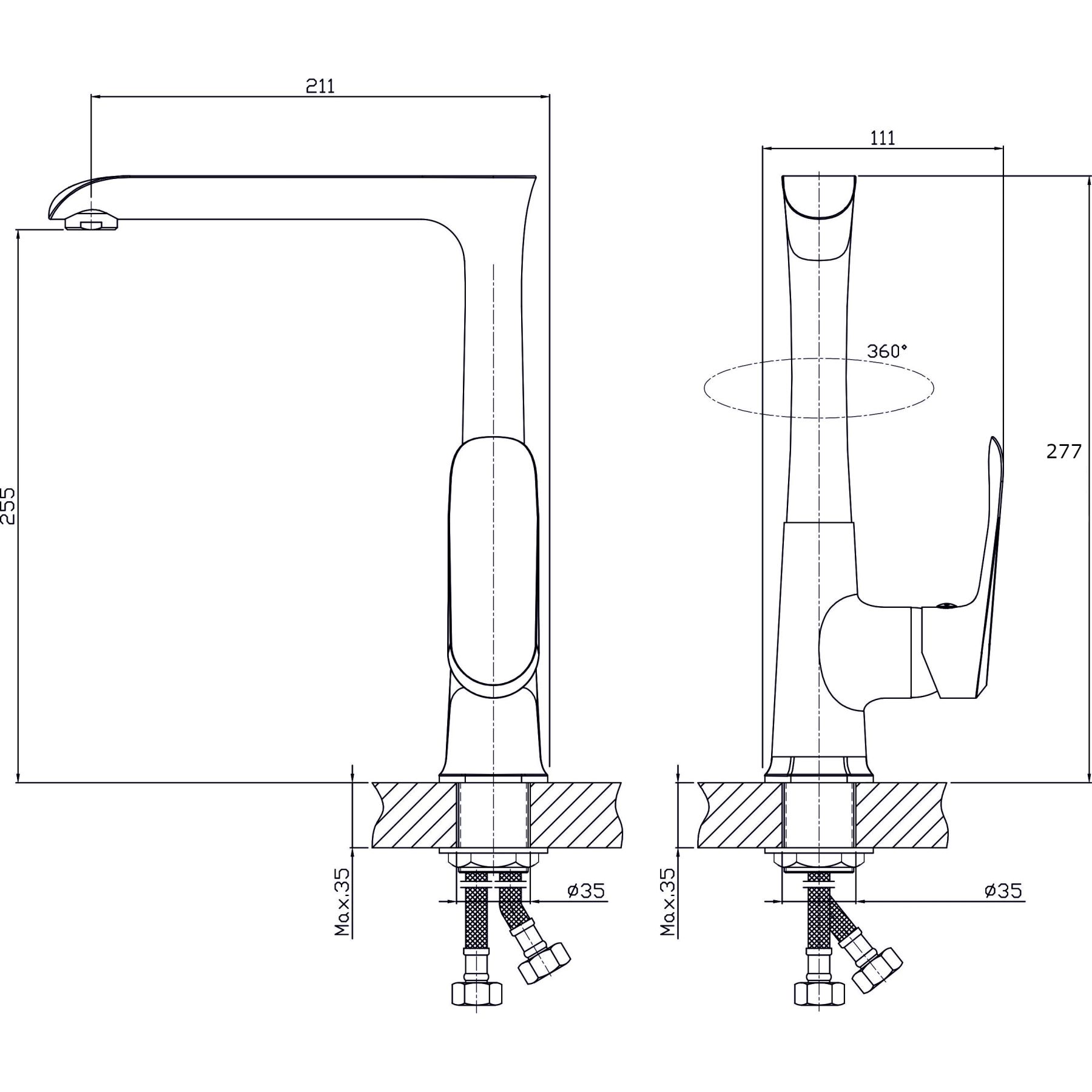 • Высота смесителя: