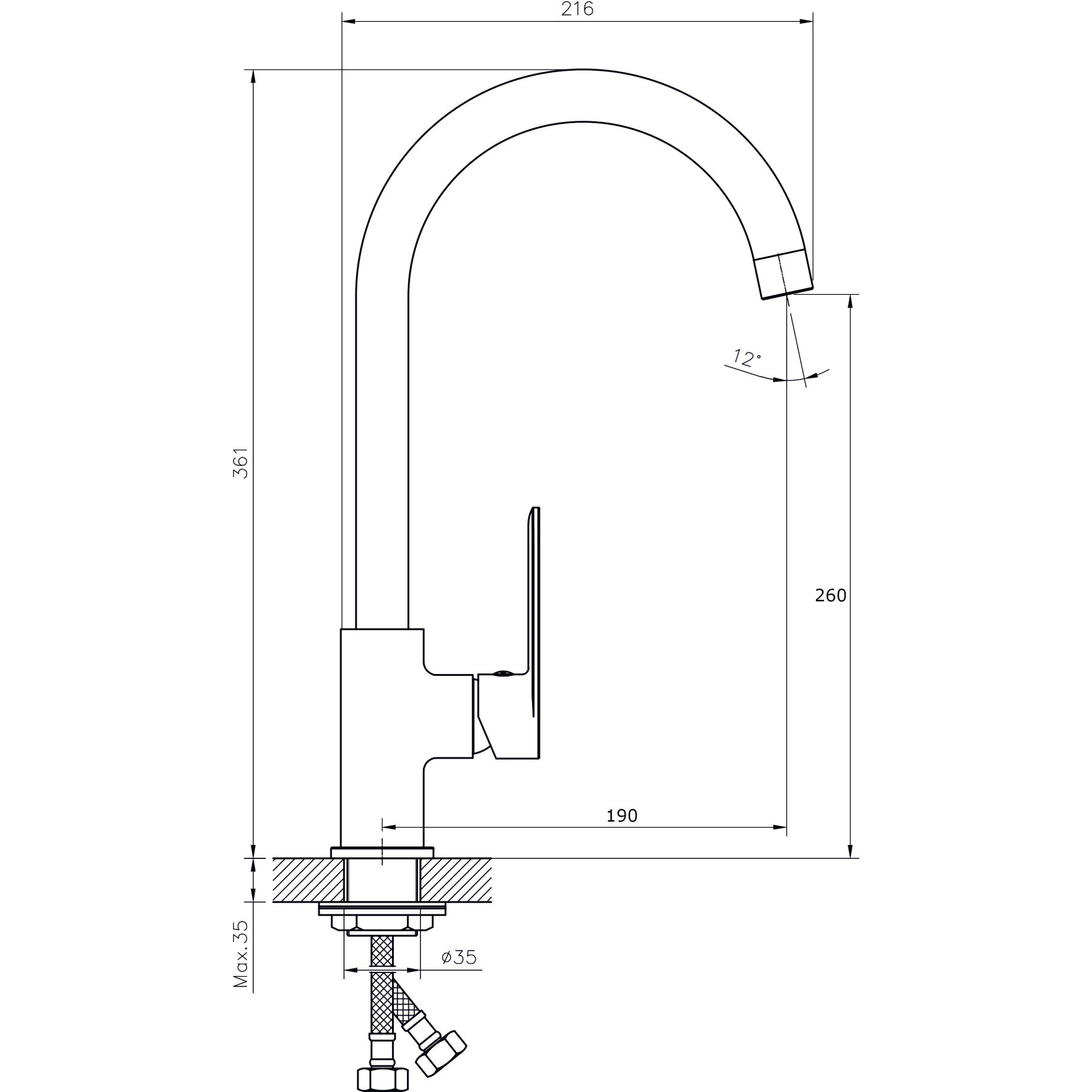 Высота смесителя:36.1