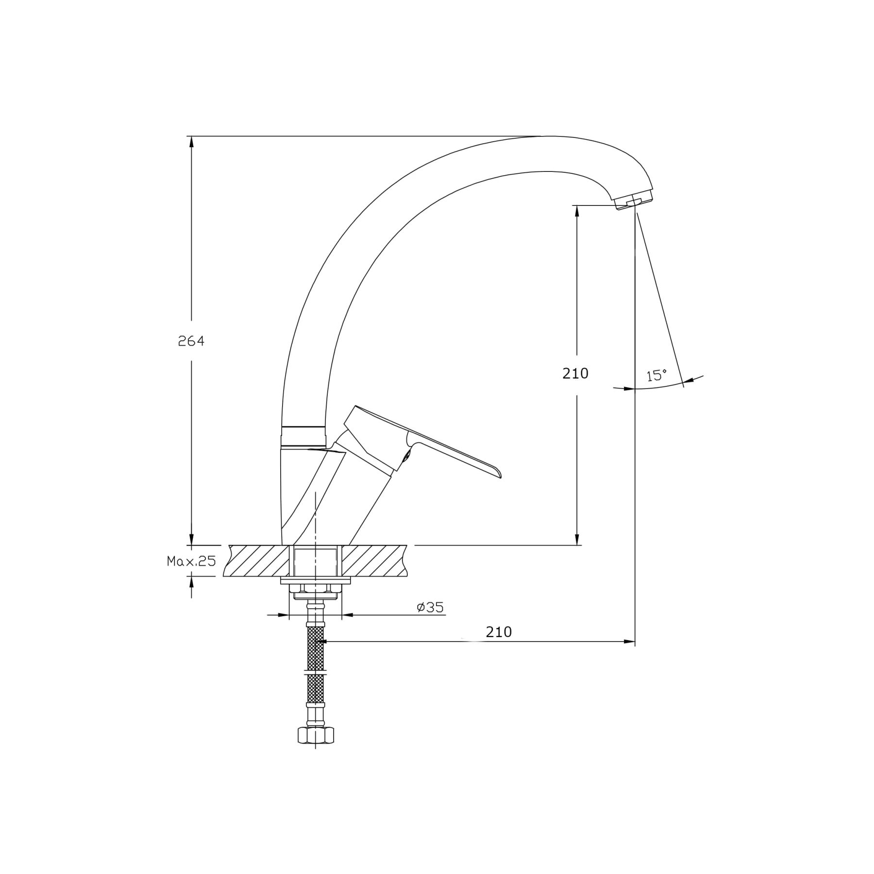 Смеситель для кухни с поворотным изливом RUSH Victori арт.VI7135-22 c металлической ручкой и имеет рычажное управление. В смеситель установлен картридж D-35 (RSH102) с керамическими пластинами. Высота смесителя 250 мм. Излив поворотный 360гр, 210 мм. Высота излива до аэратора 210 мм. Аэратор изготовлен из пластика с нержавеющим корпусом, угол наклона аэратора -15 гр. В комплекте гибкая подводка с латунными гайками 35см - 2 шт, присоединительная гайка S-30мм, втулка-27мм, фум-лента, индивидуальный пакет, паспорт, гарантийный талон.