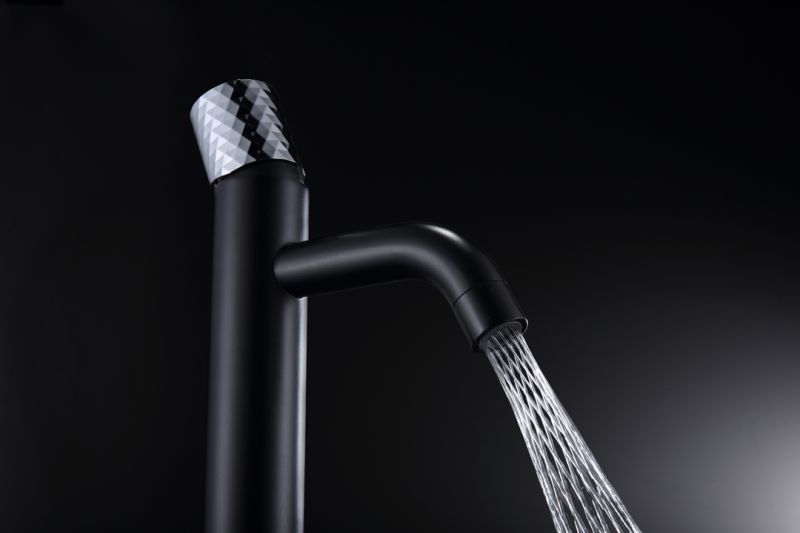 Смеситель для накладной раковины Boheme Stick Black diamond чёрный/хром 122-BCR
