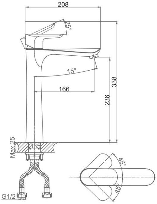• Высота смесителя: