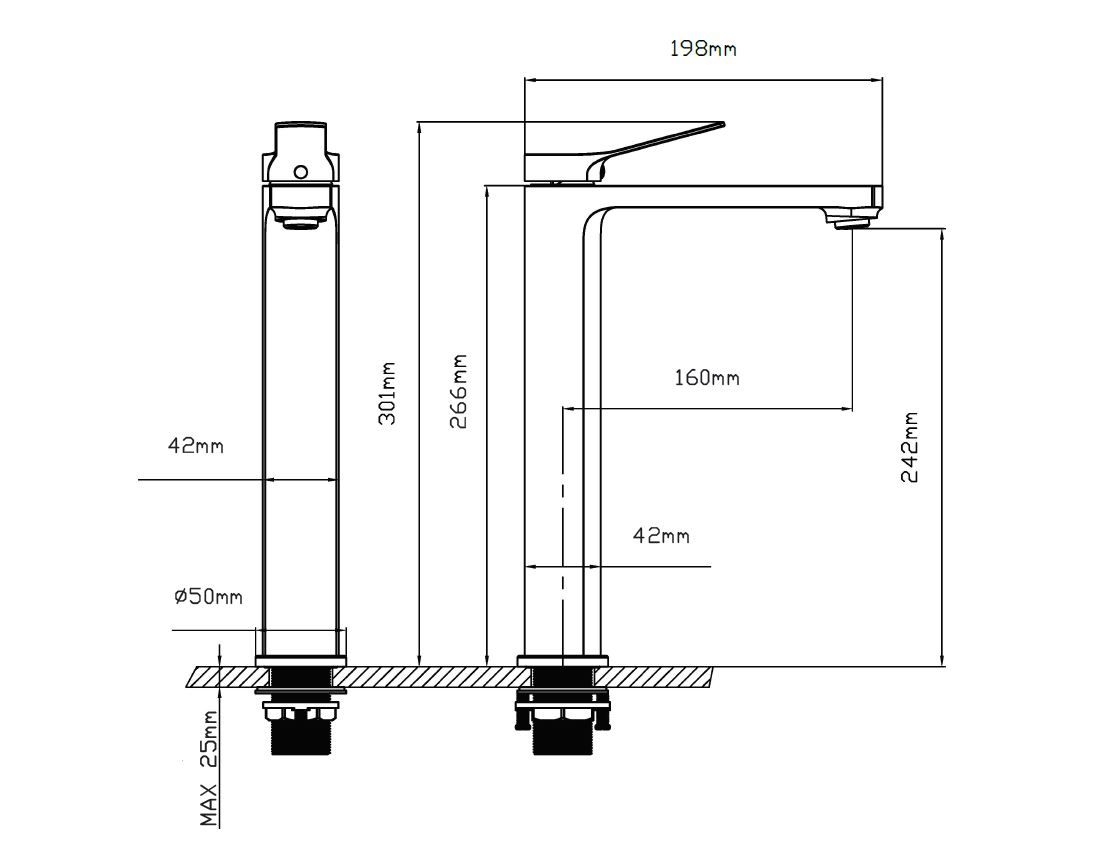 Смеситель для накладной раковины Vincea Arco VBF-4AR02CH однорычажный, хром