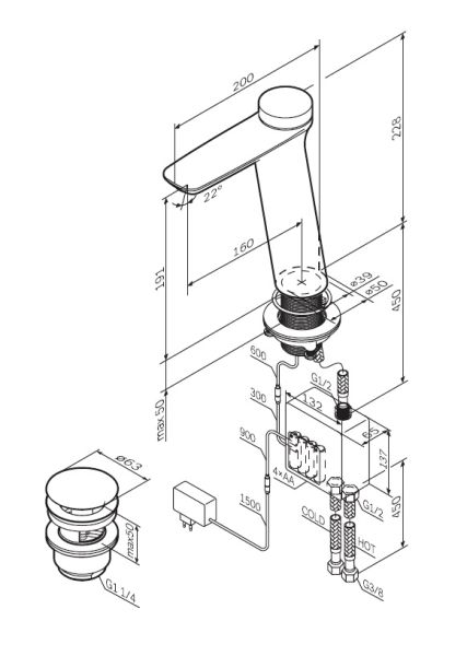 • Высота смесителя: