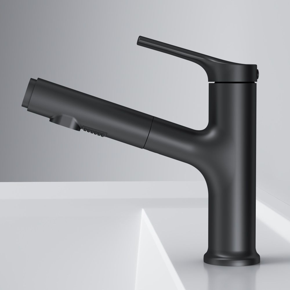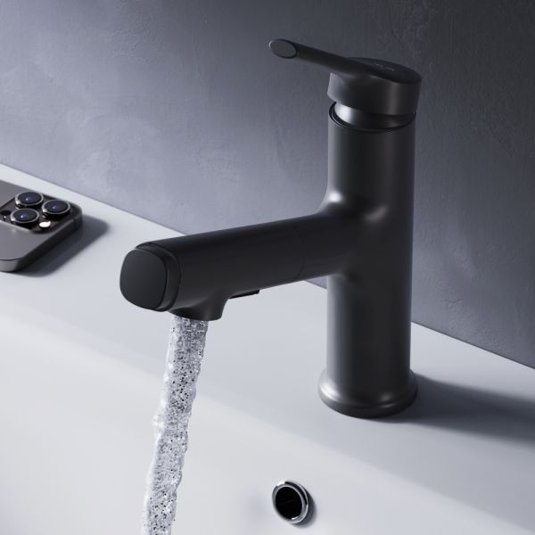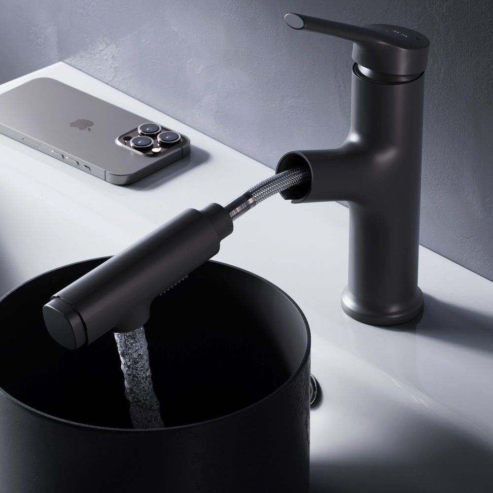 Смеситель для раковины AM.PM X-Joy S F85B02922 черныйСмеситель для раковины с выдвижной лейкой. Цвет-хром. Два режима вытяжного излива и удобное переключение одним нажатием для облегчения решения ежедневных бытовых задач. В комплекте поставки: смеситель, подводка, крепеж, инструкция