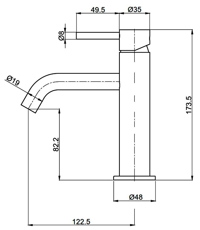 • Высота смесителя: