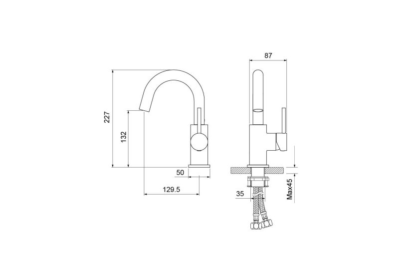 • Оснащен высоким изливом, удобен для мытья крупных предметов
