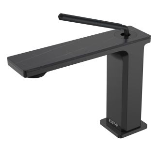 Смеситель для раковины датского производителя Black&White в черном матовом цвете. Корпус изготовлен из сантехнической латуни марки HPB 59– безопасного для здоровья сплава с высоким ресурсом. Управление потоком и настройка температуры воды происходит с помощью керамического картриджа повышенной пропускной способности, а на выходе для уменьшения разбрызгивания и экономии воды установлен аэратор. Важная стилистическая особенность — накладка на излив изготовленная из керамогранита с текстурой и рисунком черного мрамора. В формах продукта пересекаются цилиндрические и прямоугольные формы, что гармонично может дополнить концепцию ванной комнаты в экостиле.