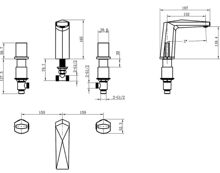 Смеситель для раковины Boheme Venturo 150-GM-ICE антрацит