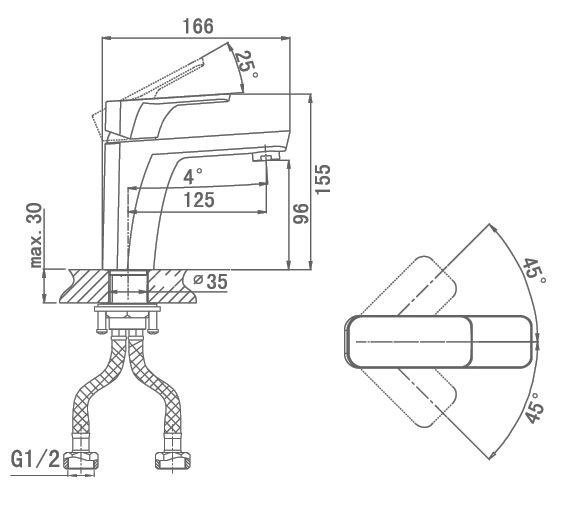 • Высота смесителя: