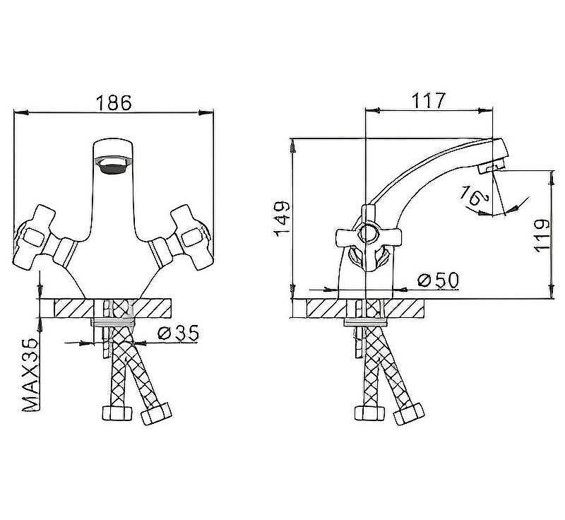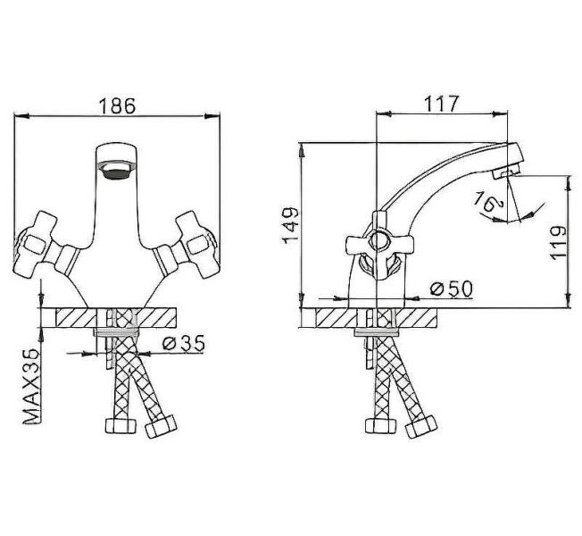 • Высота смесителя: