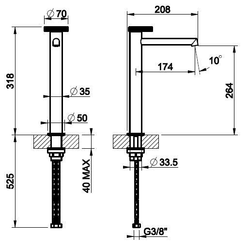 • Высота смесителя: