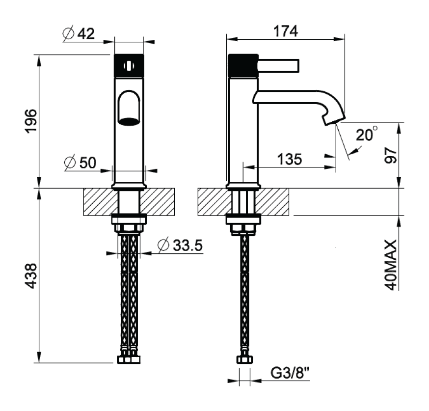 • Высота смесителя:
