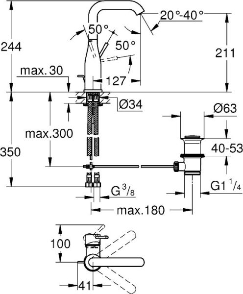 • Высота смесителя: