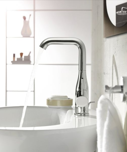 Смеситель для раковины GROHE Essence+ с донным клапаном и высоким изливом, хром (32628001)