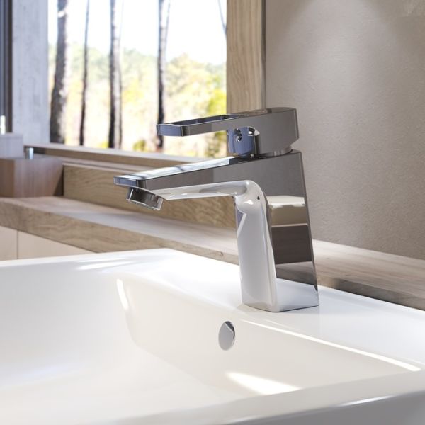 Смеситель для умывальника из коллекции Bild отличается четкими геометрическими формами и уникальным дизайном ручки-петли с тонкой изящной рамкой — ее толщина составляет всего 2 мм. Благодаря улучшенной эргономике ручка смесителя удобно ложится в руку, делая управление невероятно комфортным.