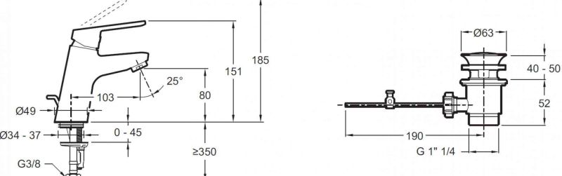 - Донный клапан черного цвета