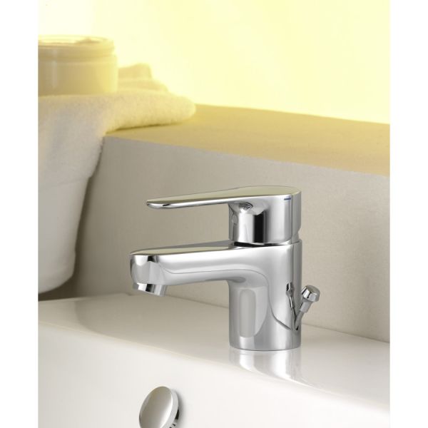 В комплекте поставки: смеситель, гибкая подводка, донный клапан.
