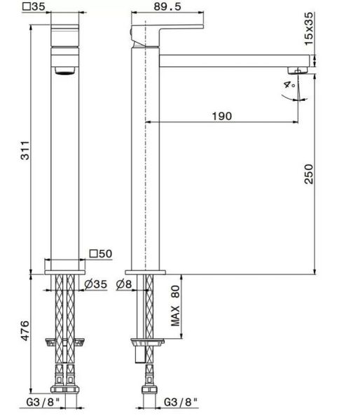 Высота смесителя:31