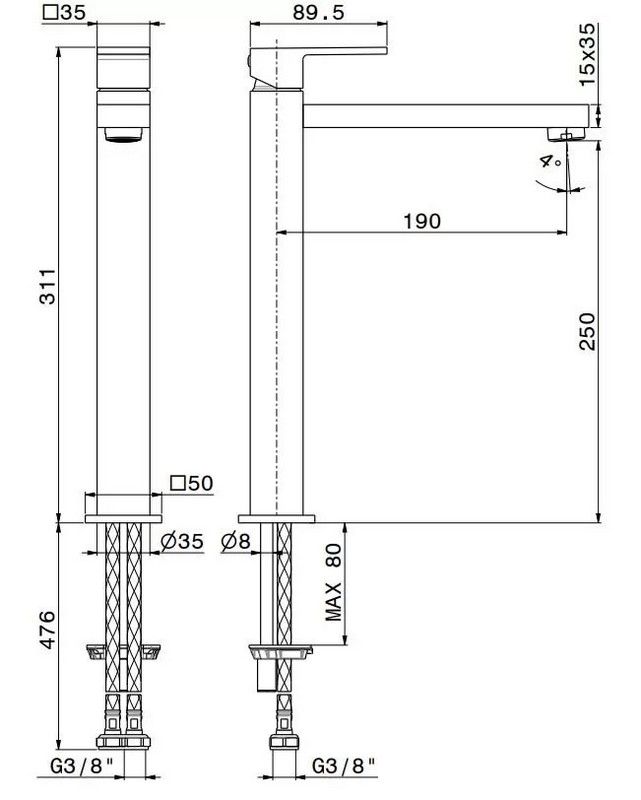 66419KM.21.018 Смеситель для раковины FUTURA однорычажный, высокий, без донного клапана 3/8, хром