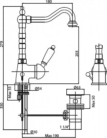 Оснащение: донный клапан, аэратор