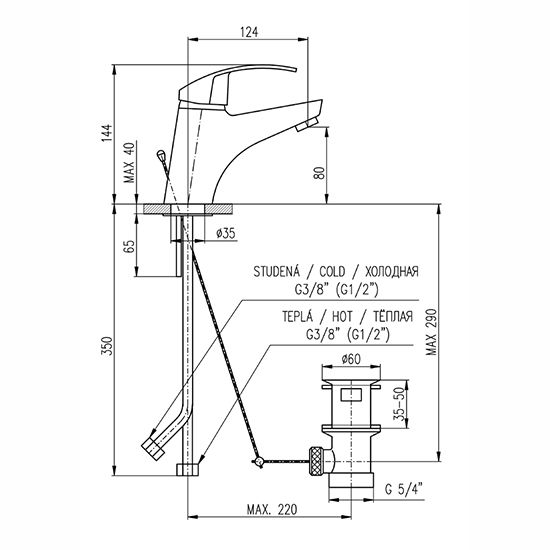 Смеситель для раковины Rav Slezak Mississippi MS027.5 ХромСмеситель для умывальника Rav Slezak Mississippi MS027.5 с донным клапаном-металлический. Гибкая подводка 1/2 длинной 35см. KA4002 керамический катридж 40мм Kerox, производство Венгрия.