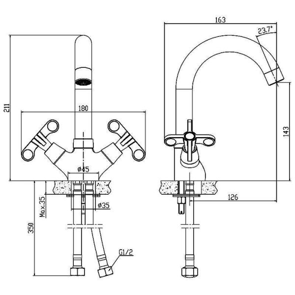- Гибкая подводка длиной 35 см.