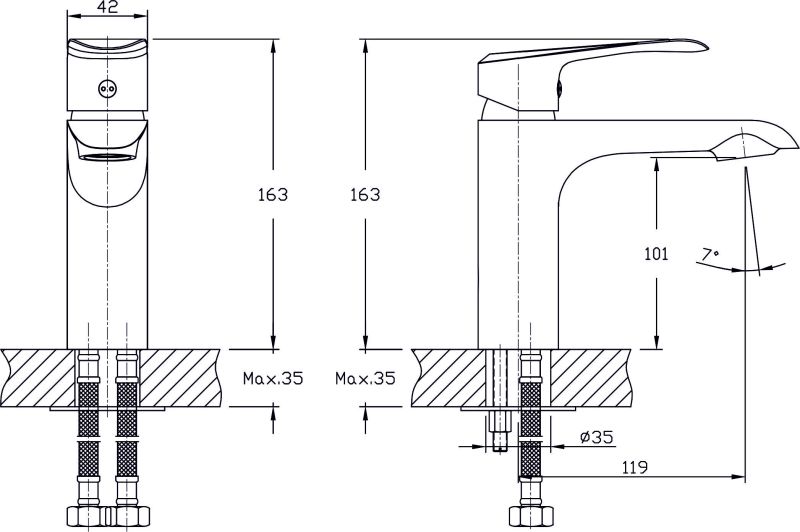 Смеситель для раковины RUSH арт. GZ3735-11 с металлической ручкой из коллекции Gozo изготовлен из высококачественной латуни и имеет рычажное управление. В смеситель установлен картридж D-35 с керамическими пластинами. Высота смесителя 163 мм. Излив литой неповоротный 119мм., высота излива до аэратора 101 мм. Аэратор изготовлен из пластика с нержавеющим корпусом, угол наклона аэратора- 7 гр. В комплекте гибкая подводка с латунными гайками 35 см - 2шт, универсальная присоединительная группа, фум-лента, индивидуальный пакет, паспорт, гарантийный талон.