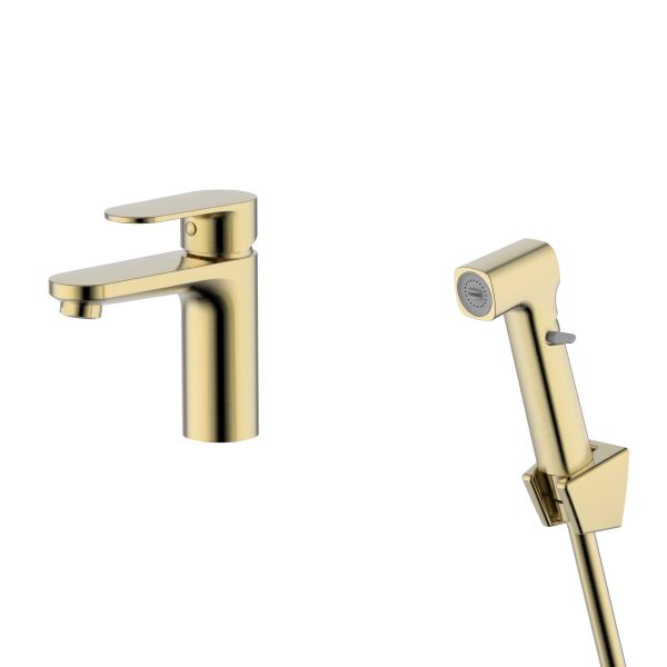 Смеситель для раковины с гигиеническим душем Aquatek Ника AQ1812BG золотоСмеситель
