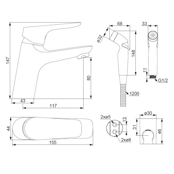 Назначение:для раковины с гигиеническим душем