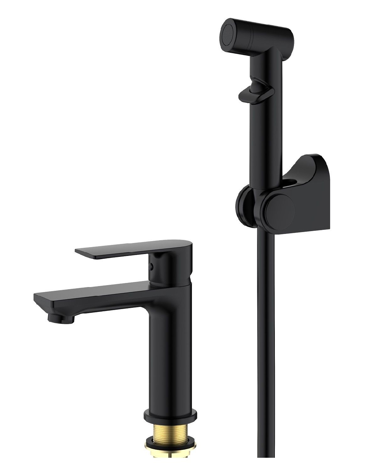 Смеситель для раковины с гигиеническим душем Splenka S05.12.06 чёрный