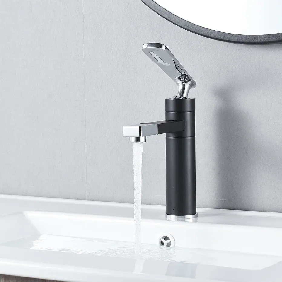 Смеситель для раковины Shevanik S6601H с поворотным носиком чёрный/хром