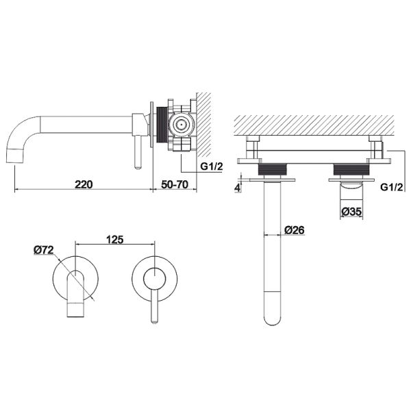 - длина излива 220 мм;