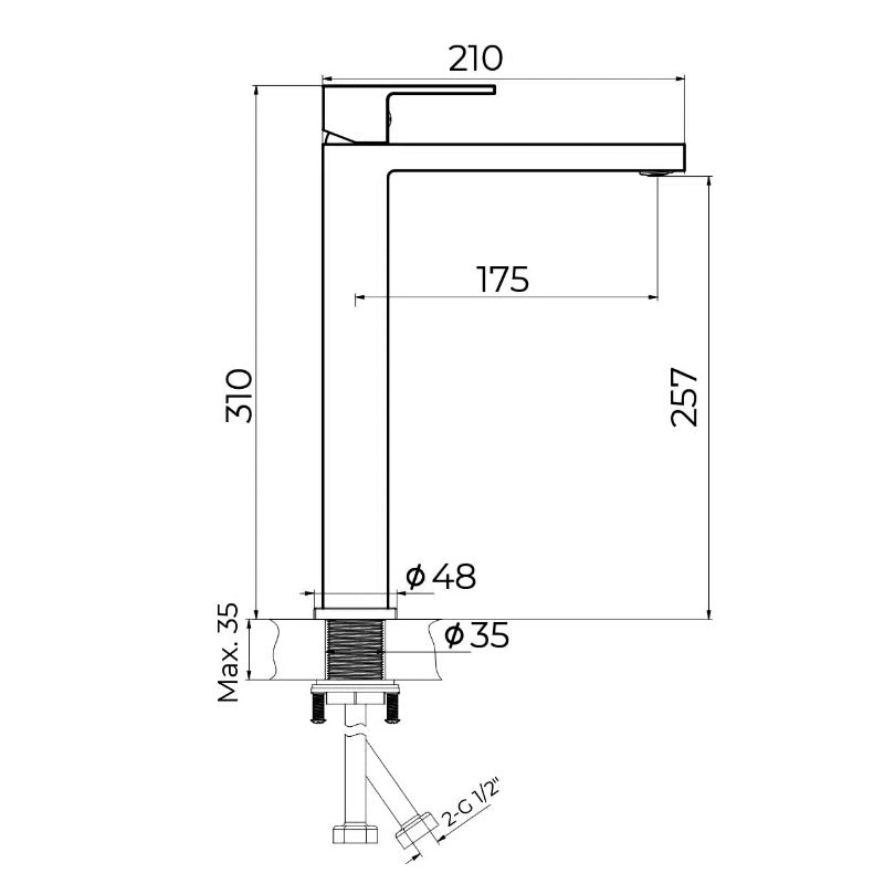 • Высота смесителя: