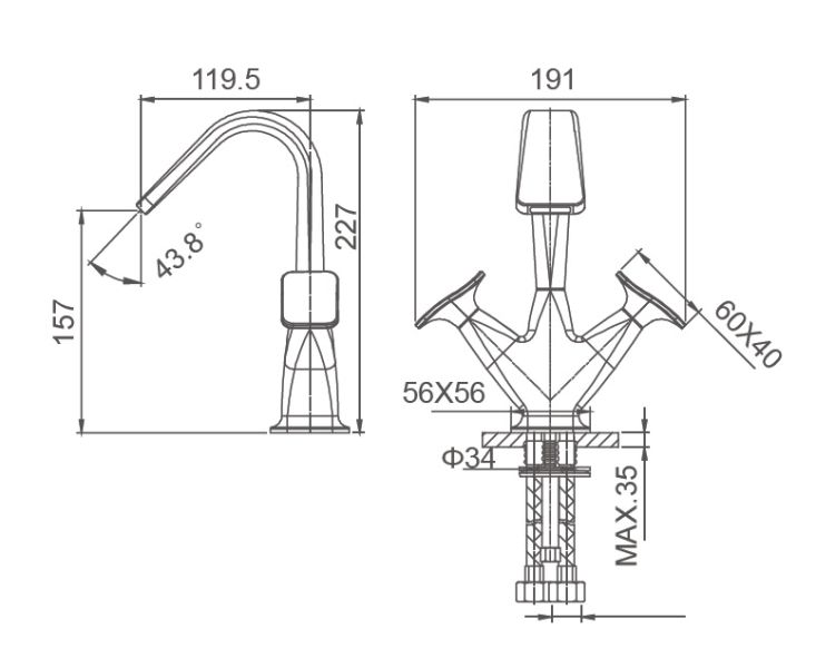 • Высота смесителя: