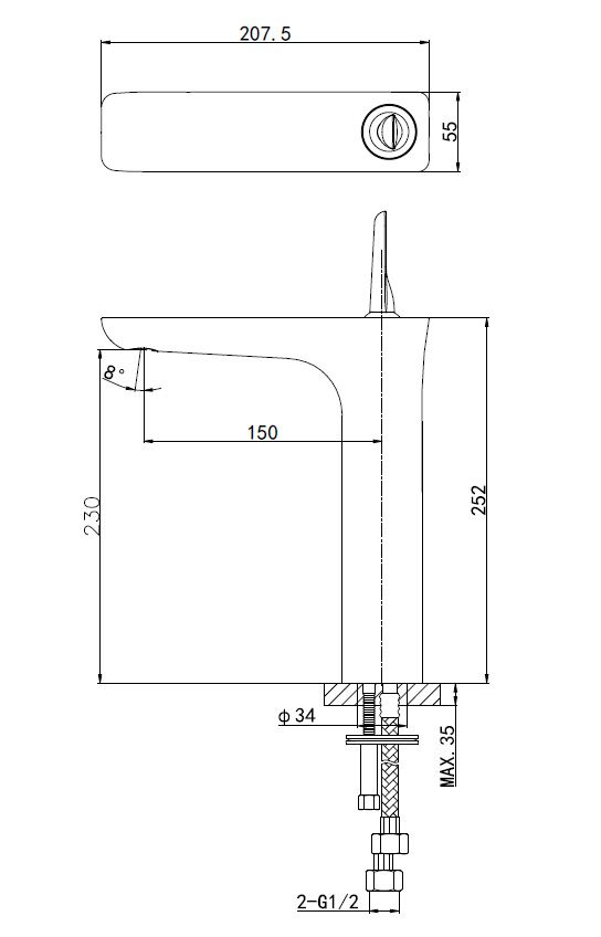 Смеситель для раковины высокий WONZON & WOGHAND SHARK, Хром (WW-48B1102-CR)