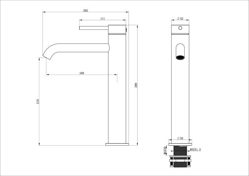 Смеситель для раковины высокий WONZON & WOGHAND STICK, Черный матовый (WW-88239017-MB)