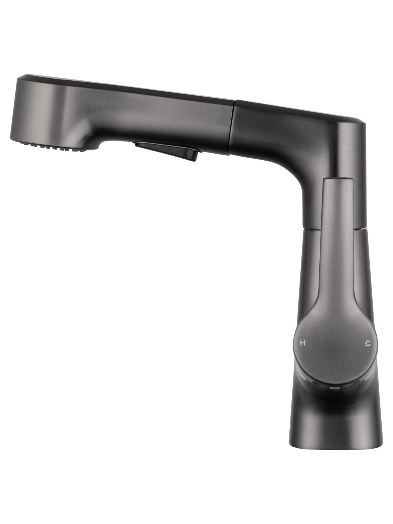 Смеситель для раковины Wonzon & Woghand WW-121B108-BGG с выдвижным изливом тёмный графит