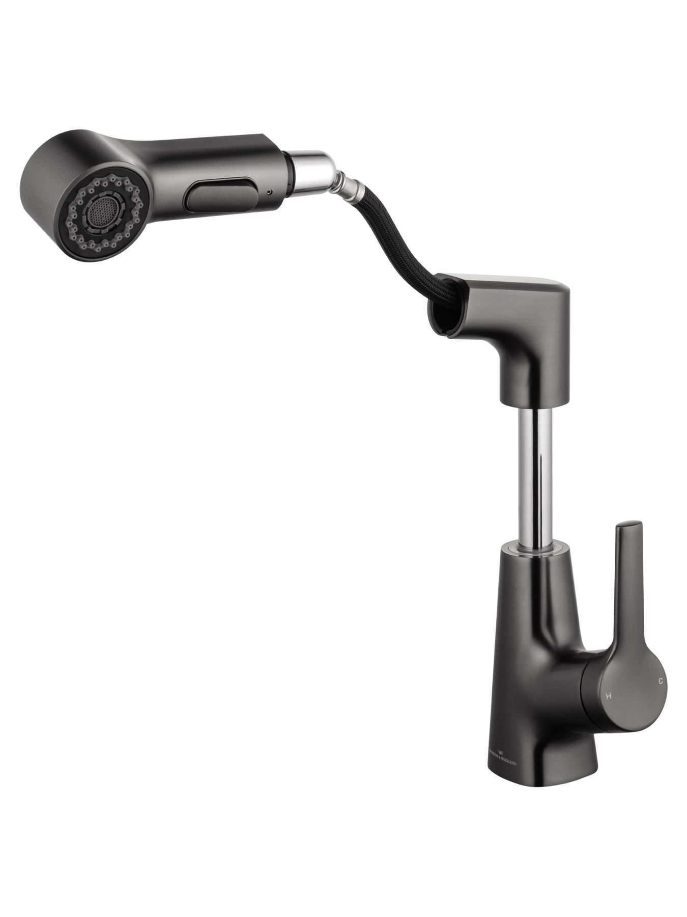 Смеситель для раковины с выдвижным изливом WONZON & WOGHAND, Темный графит (WW-121B108-BGG)