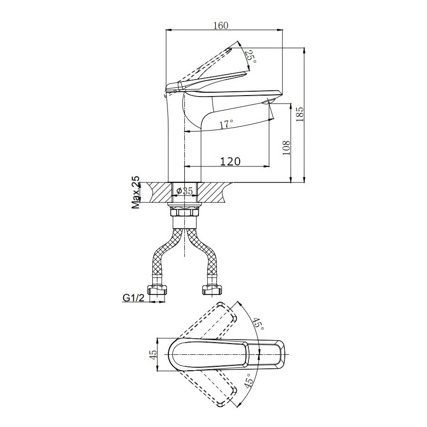 Смеситель для раковины RUSH арт. NE1735-12blak с металлической ручкой из коллекции Nevis изготовлен из высококачественной латуни и имеет рычажное управление. В смеситель установлен картридж D-35 с керамическими пластинами. Высота смесителя 185 мм. Излив литой неповоротный 116 мм. Высота излива до аэратора 108 мм. Аэратор изготовлен из пластика с нержавеющим корпусом, угол наклона - 17 гр. В комплекте универсальная присоединительная группа для установки на горизонтальную поверхность, гибкая подводка с латунными гайками 40 см - 2шт, фум-лента, индивидуальный пакет, паспорт, гарантийный талон.