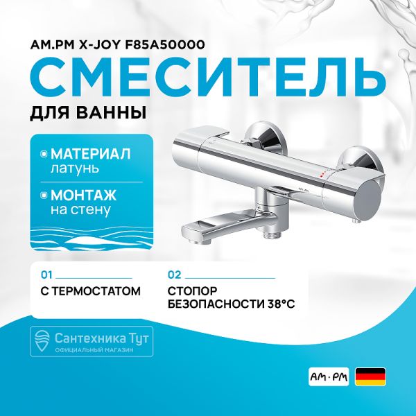 Смеситель для ванны AM.PM X-Joy F85A50000 с термостатом ХромХарактеристики:Цвет: хром.